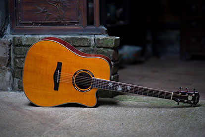 日期:2020-09-01實(shí)木原聲吉他是由幾片很薄的木頭制作而成(約在3mm左右),因?yàn)槟绢^很薄,表面積有大,所以它既容易很快吸收水分,也容易失去。 -